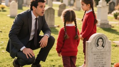 Regresó al cementerio para despedirse de su exesposa, solo para encontrar junto a su tumba a dos niñas idénticas a él que la llamaban mamá.