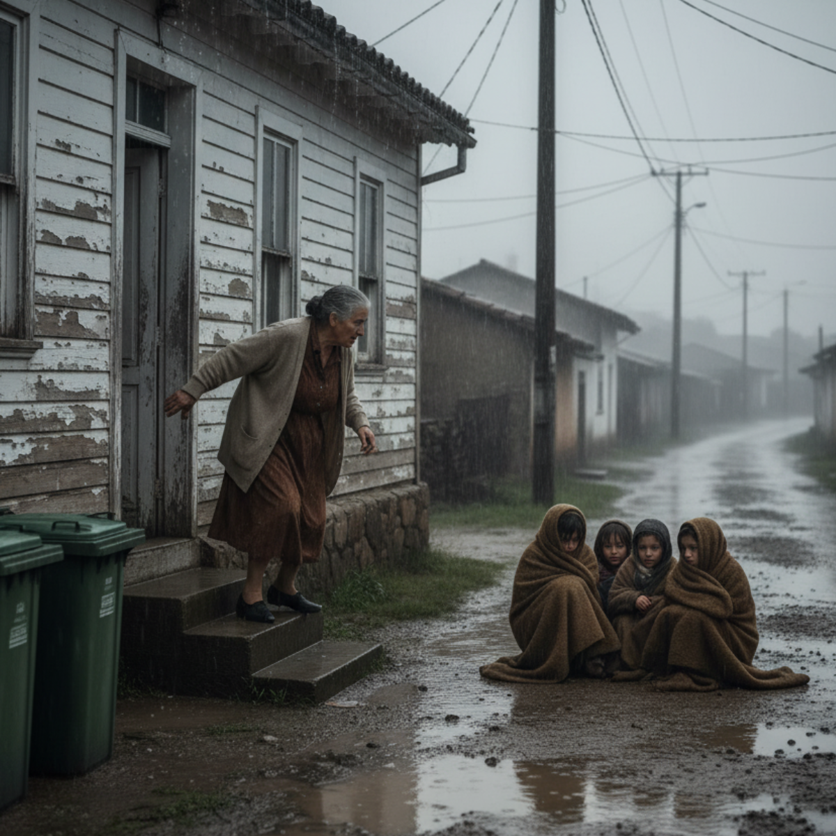 Una mañana de octubre, la lluvia caía con una persistencia gris y monótona. Evelyn abrió la puerta mosquitera para recoger el periódico y los vio. Tres niños blancos, acurrucados bajo una manta raída y empapada junto a sus cubos de basura. Estaban descalzos, con los pies amoratados por el frío. Sus pequeños cuerpos temblaban sin control, y sus ojos, enormes en sus rostros pálidos y sucios, le devolvieron una mirada cargada de un miedo y una resignación que ningún niño debería conocer.