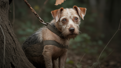 Deep in a quiet forest, a small dog was tethered to a fate he did not deserve. He had been…