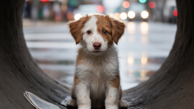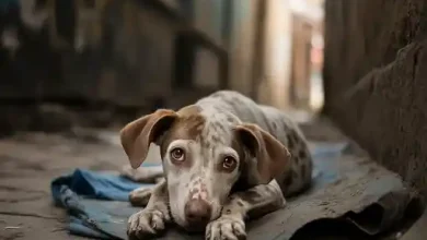 In a forgotten corner of the city, amidst piles of waste and the debris of human indifference, a young dog…