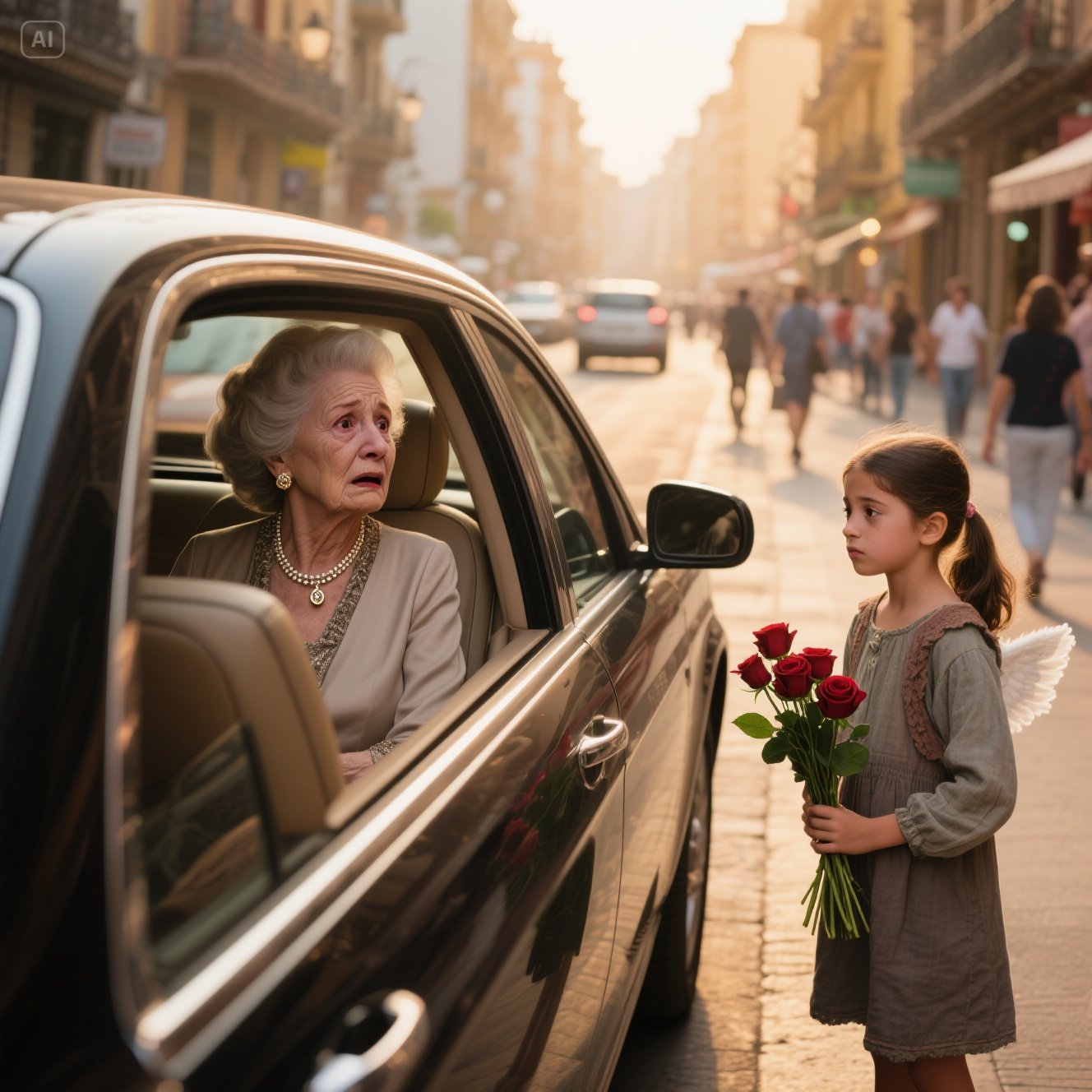 —¿Rosas para la señora? —preguntó, su vocecita sonando como una campana clara y frágil en medio del estruendo urbano.